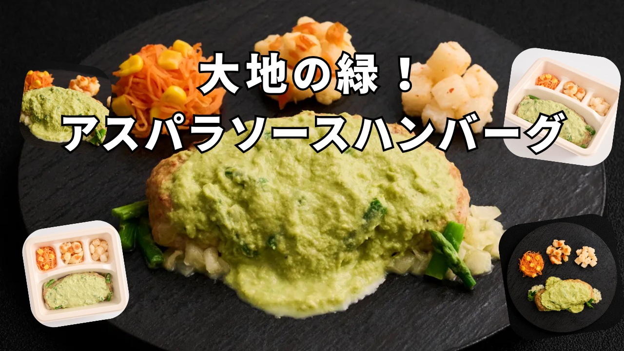 「野菜の味がしっかり感じられる、特別なハンバーグを届けたい」 そんな思いから生まれたこのメニューは、グリーンアスパラの甘みと爽やかな香りを引き出した特製ソースが決め手。 ソースとの相性を最大限に活かすため、ハンバーグには鶏肉をメインに使用し、軽やかでヘルシーな味わいに仕上げています。
