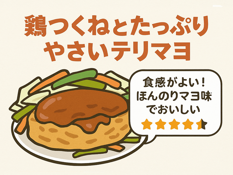 軟骨入りの鶏つくねが特徴的で、コリコリとした食感と甘めのテリヤキソース、ほんのりとマヨネーズの風味がマッチしており、満足感のあるメニューです。つくねの下に敷かれた野菜との組み合わせも一部で好評ですが、合わないと感じる人もいます。