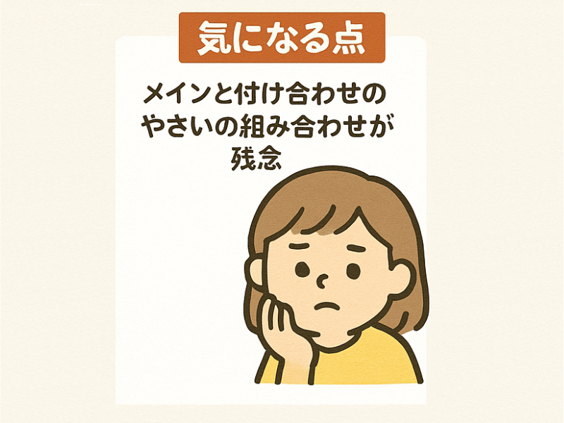 - 副菜の味や構成について「物足りない」との意見も少数ある。